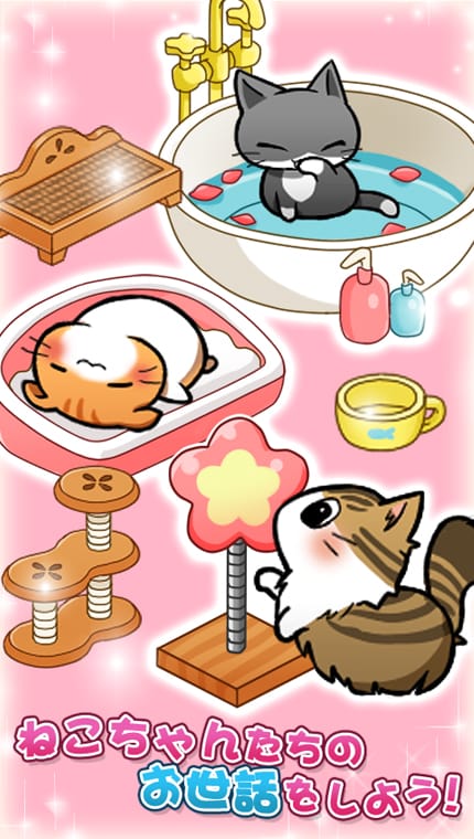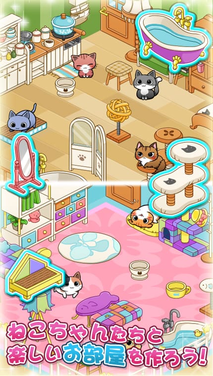 キャットルームは、たくさんのかわいいねこちゃんたちと一緒に、あなただけのお部屋を作れる無料箱庭ゲームです。子猫や三毛猫、スコティッシュフォールド、マンチカン、アメリカンショートヘアなど、たくさんのかわいいねこちゃんが登場します。パズルを進めてゲットした星で、ねこちゃんたちをコレクション!オリジナルのねこ部屋を作って、ねこちゃんをかわいがりましょう。その他にも、子猫を育成して子猫サイズのねこちゃんをゲットしたり、キッチンでお菓子や料理を作成したりできます。ねこの楽園「ねこランド」で他のねこ好きさんと交流したり、写真をシェアすることもできます。